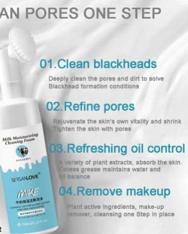 این فوم حاوی پروتئین شیر هست سرشم فیس براش سیلیکونی داره که میتونین صورتتونوباهاش بشورین و از شستن بادست بهتره و منافذوخوب تمیزمیکنه🫶🏻❤️