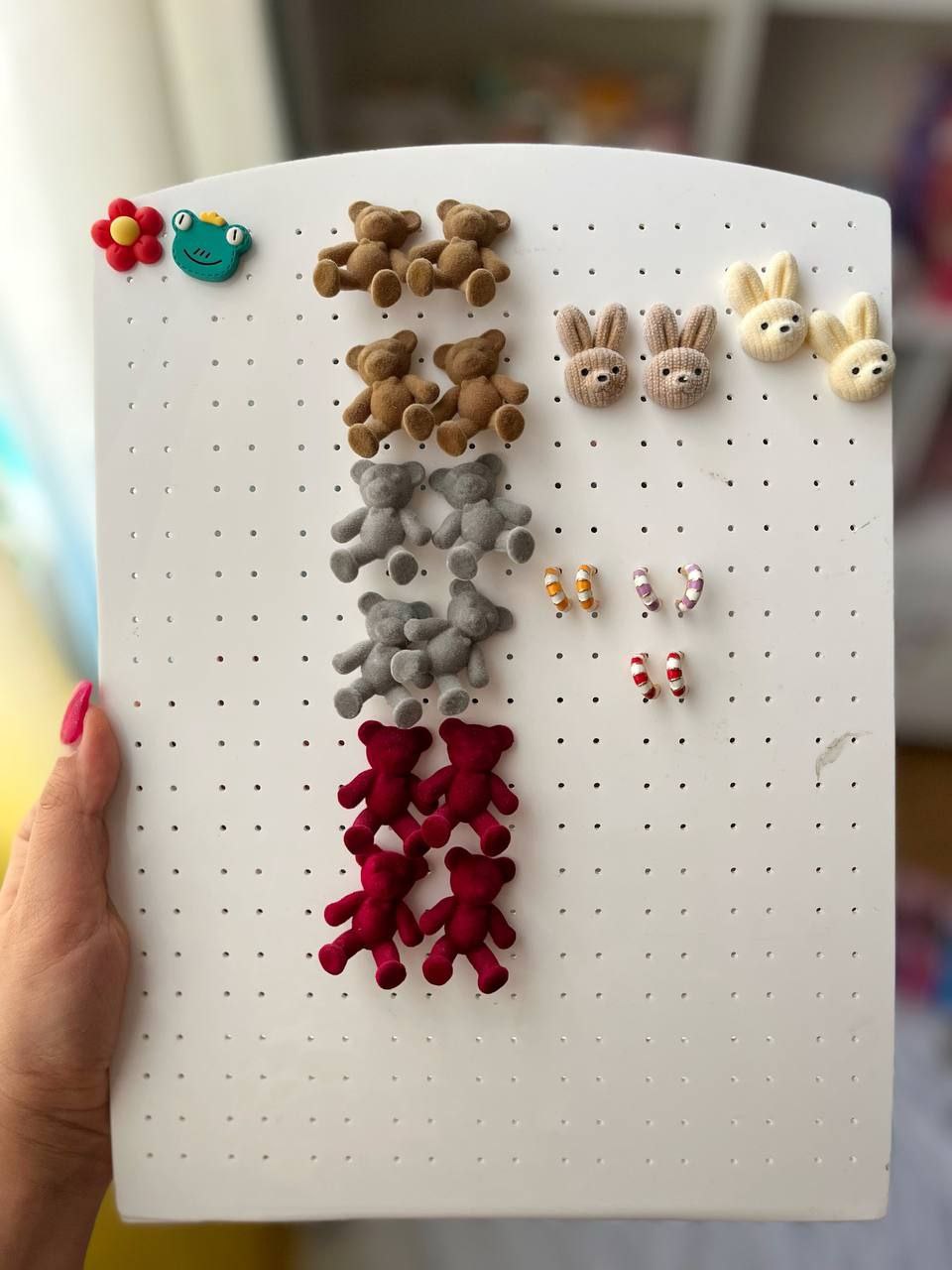 / گوشواره گل و قورباغه / گوشواره خرگوشی مخمل / خرس مخمل زرشکی / خرس مخمل قهوه ای / خرس مخمل خاکستری